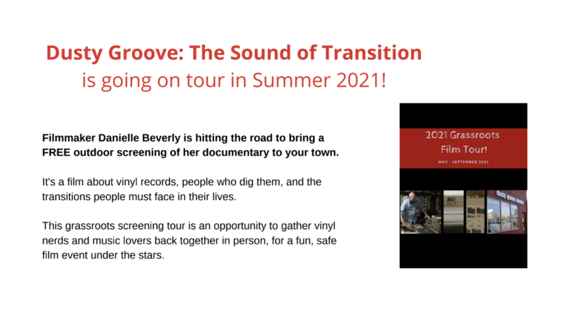 Dusty Groove is a documentary by acclaimed filmmaker Danielle Beverly. It follows the journey of records, from a Chicago record store to buyers' homes and the universal love, loss and life transitions that ties us all together.