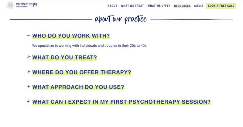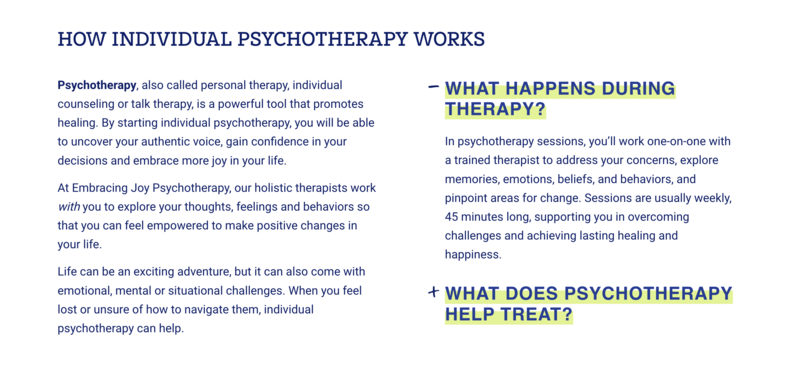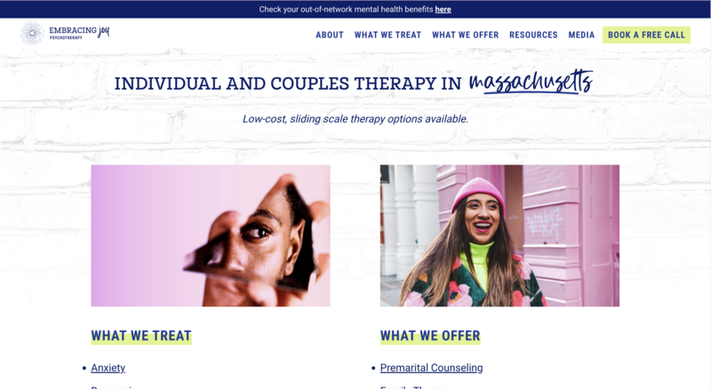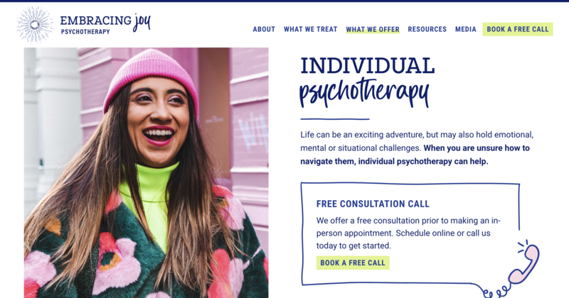 The Need: Embracing Joy Psychotherapy is growing and needed a fresh new website to match its exciting multi-state expansion.